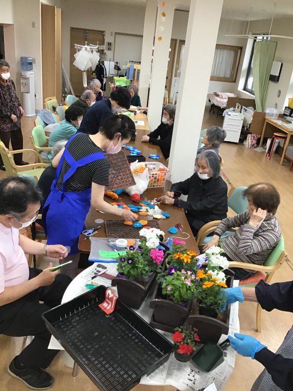 ご利用者様と事前にどんなお花をどう植えて行こうか話し合いをしました。