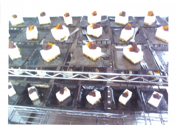甘さ控えめのチーズケーキの上にセンター長が手づくりした羊かんとバターで少し煮詰めた