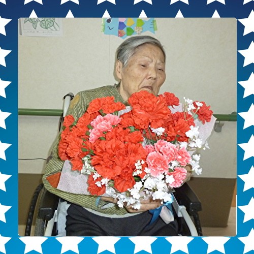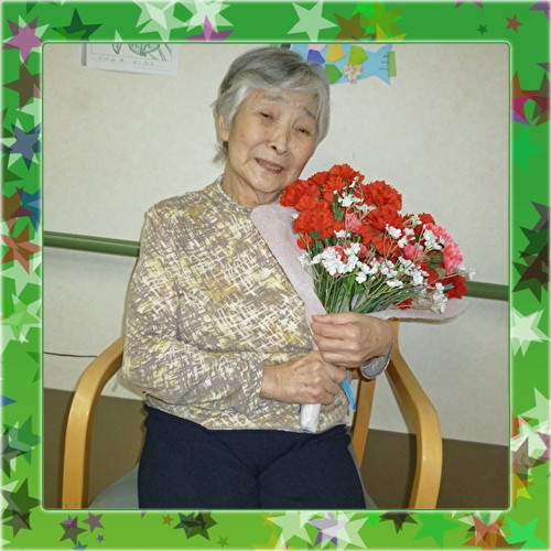ご家族様からのお花はもちろんですがホームからの花束とケーキも大変喜んで頂きました