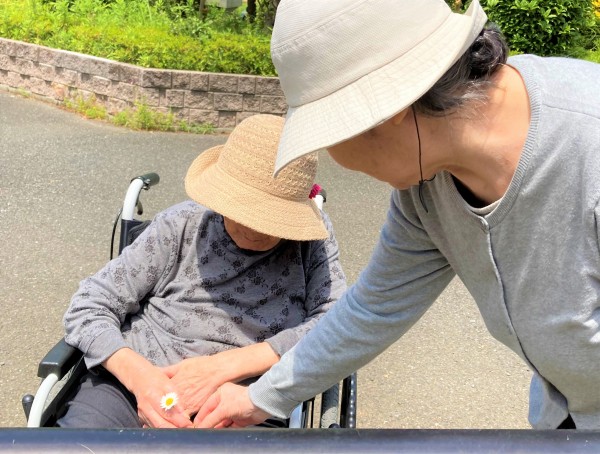 お散歩から戻られた入居者様らをスタッフがお迎えしました。