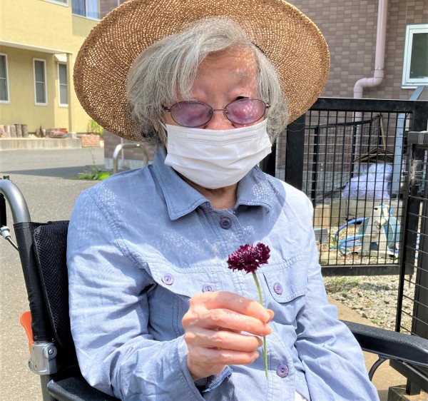 種を蒔いたスタッフ自身がすっかり何の花か忘れてしまっている花壇ですが、「いっぱい咲いてるわねえ」とお気に召していただけたようでした(*^_^*)