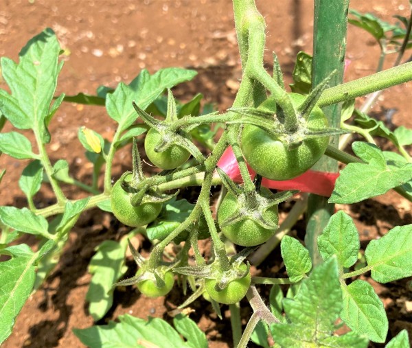よく目を凝らしてみると、根元の方にプチトマトの実が成り始めていました!!