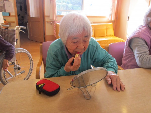 さて、今日は女性のご利用者様に口紅を塗って気分転換をしていただきました(^^)