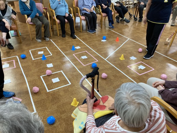 今日のレクは職員が徹夜で考えた?(笑)ハイパーコロコロゲームで~す(^ ^)/