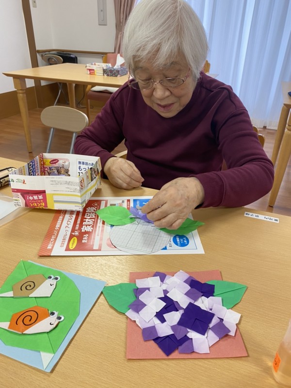 細かい作業でしたが、『今年は梅雨入りが早いらしいよ』『丸く貼っていくのね』『私は6月生まれよ♬』『素敵に出来たよ!』