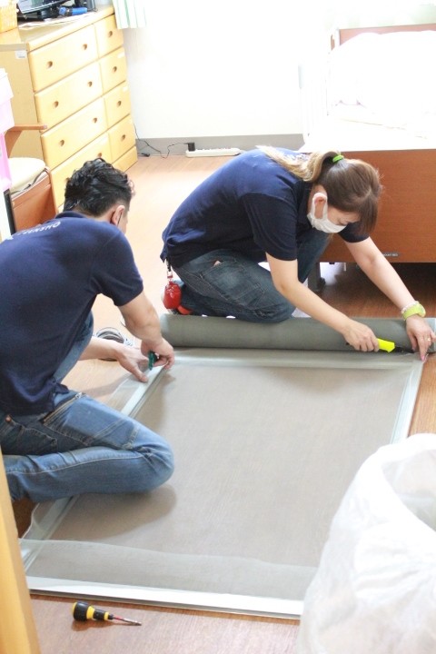 今日は❣グループホームみんなの家 蕨の介護ブログ❓です。先日5月17日に、みんなの家 蕨の各居室の網戸18か所と2階3階のリビングの網戸4枚の網戸張替えをしました。個々のホームは、平成16年(2004年)に開設しました。今年で17年になりました。それなりに、色々なところが修繕しなくてはいけなくなっています。数年前から、各居室の網戸が破けたり自然に劣化して虫が自由に行ったり来たりできる状態になり夏でも外の空気を取り入れることが出来ない日々が続いていました。やっと今年、夏になる前に網戸の張替えができ、各部屋虫を気にすることなく換気をすることが出来るようになりました。また、リビングの網戸も張り替えられ換気を十分することができるようになりました。ご利用者様の皆様には長い事ご不便をおかけしました。今年の夏は、一杯夜風を取り入れて下さい。でも、寝冷えは気をつけて下さいね❣❣と言うより、一番喜んでいるのは、職員の皆さんのような気がします。(笑)