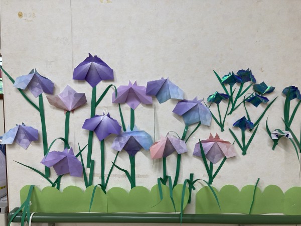 今回は梅雨時にあったお花を折り紙で作ったのでした(写真)