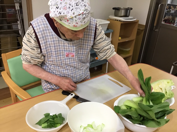 かたくりの里 みずほ台では、お昼ご飯の調理をご利用者様にお手伝いしていただいています。