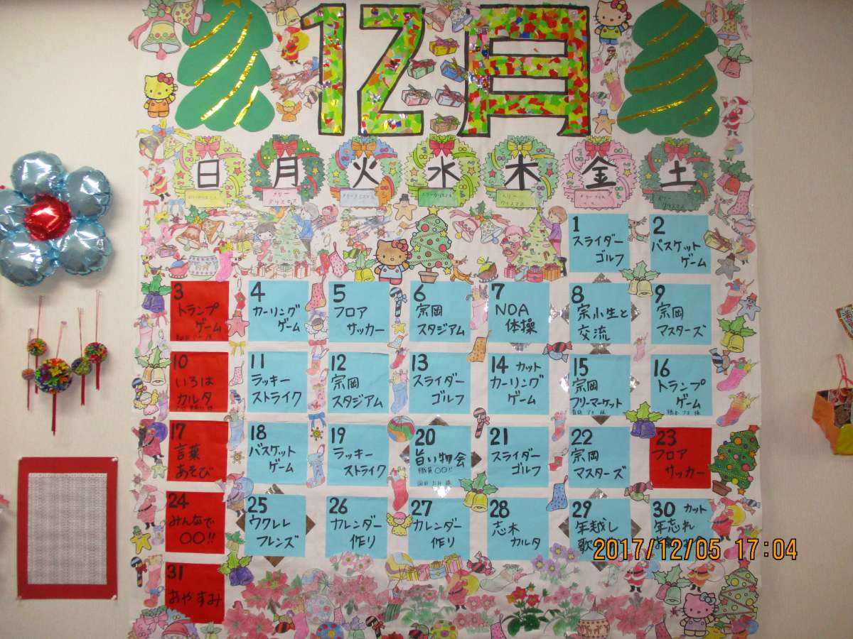 デイサービスセンター遊・志木中宗岡の12月のレクリエーションカレンダーです。