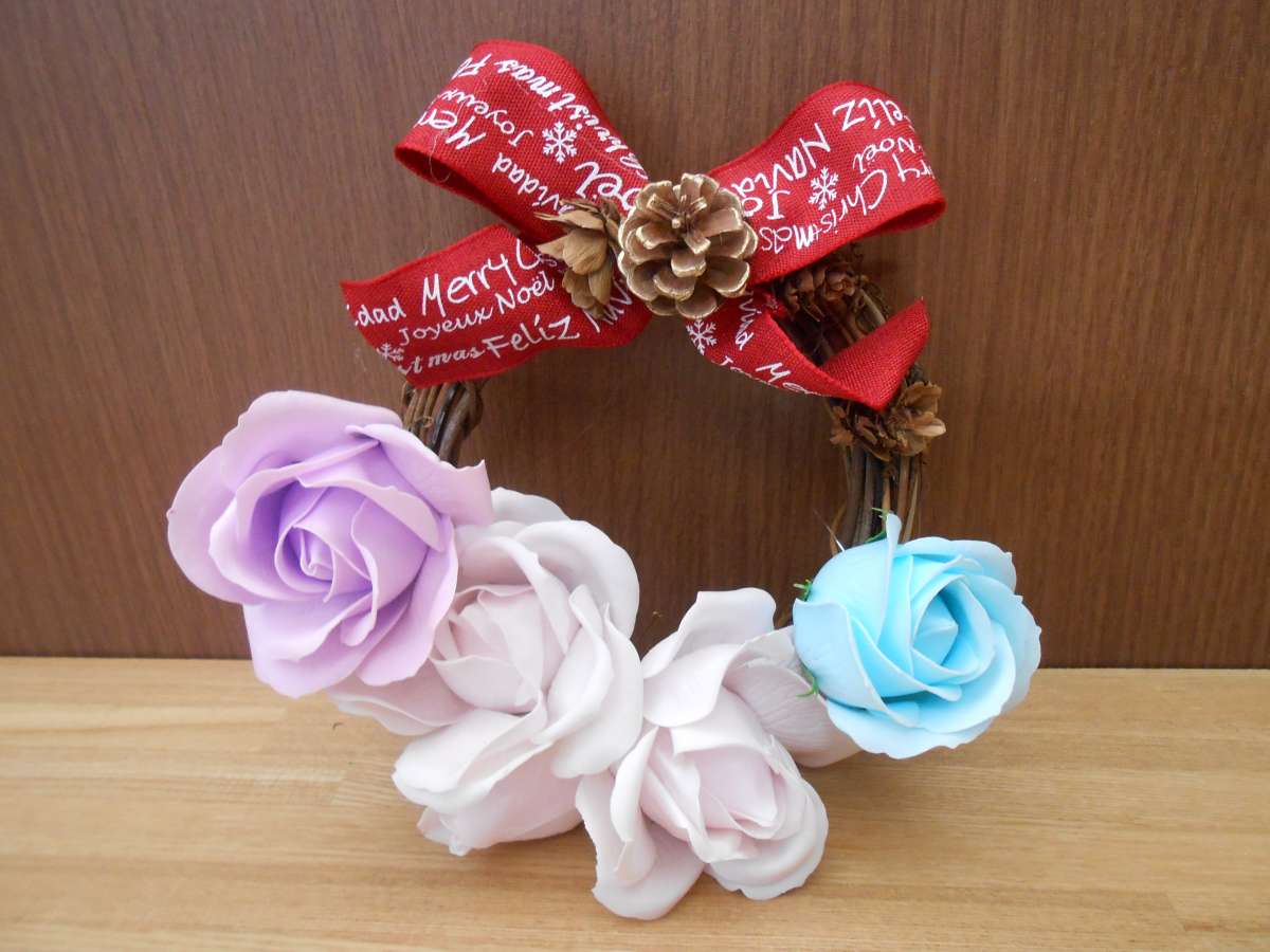 先日、ご利用者の皆様とクリスマスリースを作りました。