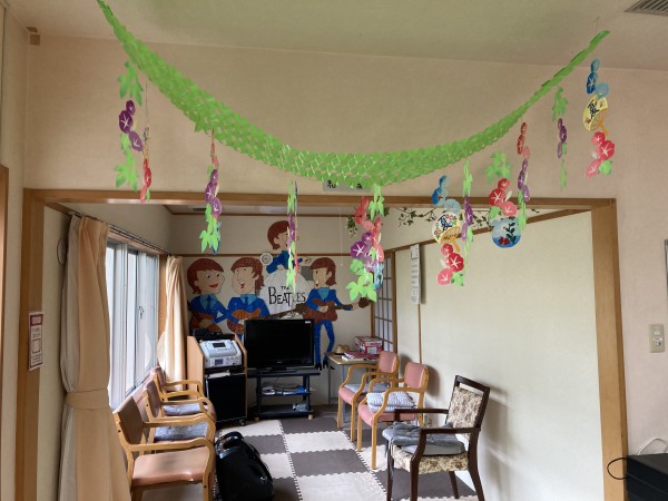 そしてカラオケルーム前には夏らしさ満点の朝顔の飾りが登場しました(^^)/