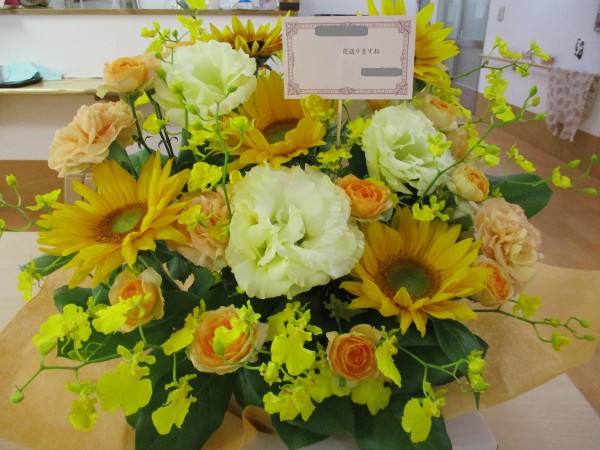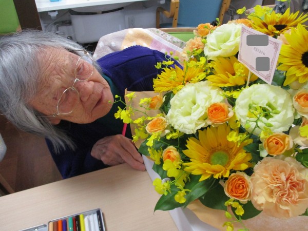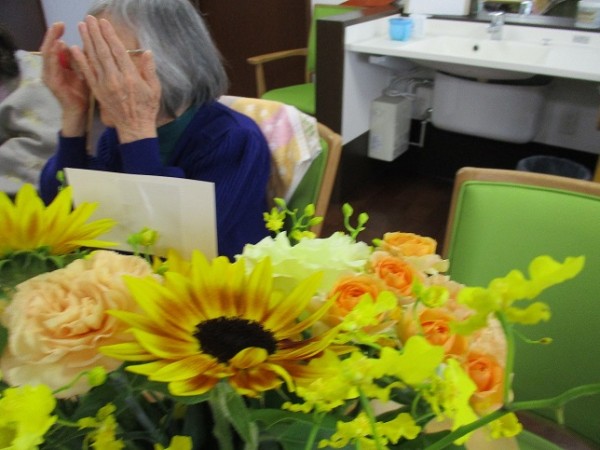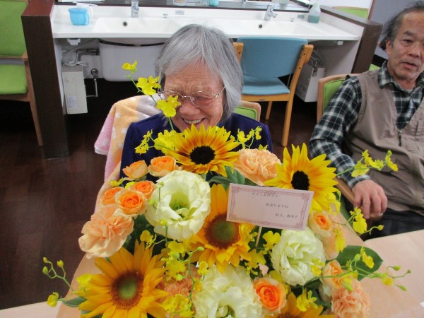 色塗りをされていたH様に、お花の事を伝えお渡しすると