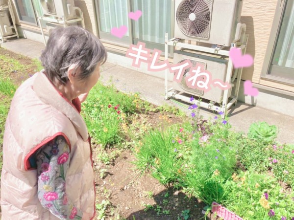 先日、気分転換にホーム内のお庭と花壇に行ってきました