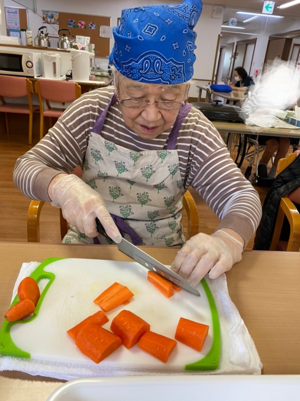 流石ベテラン主婦でいらした皆様!『包丁を持つのは久しぶりだわ〜』とおっしゃっていましたが、人参やピーマンなどテキパキと綺麗に切ってくださいましたよ☆