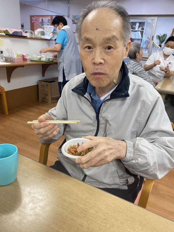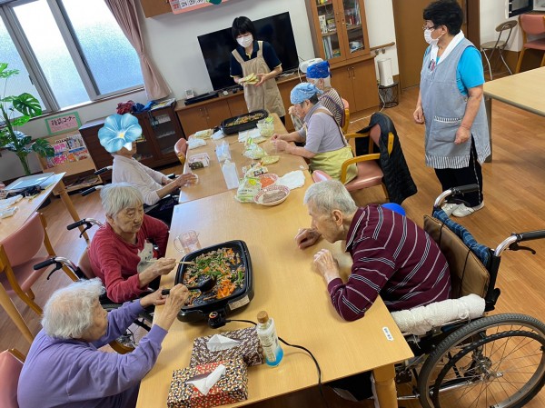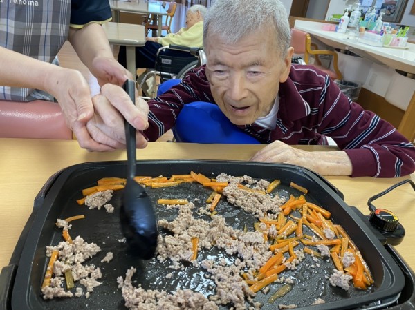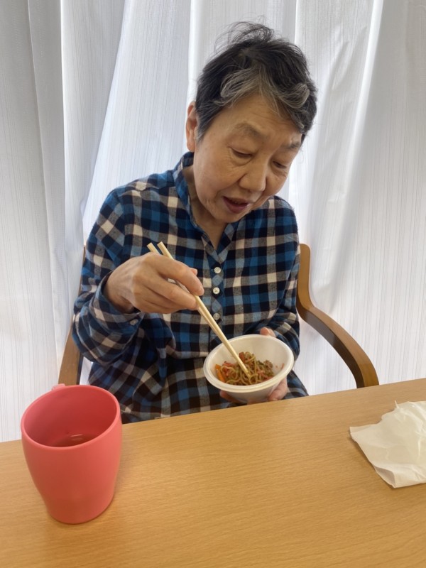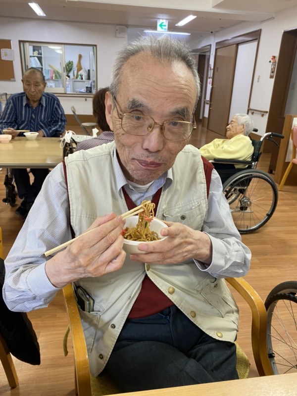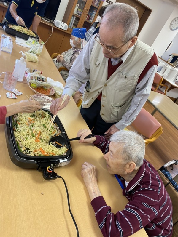 『子供によく作ったもんだよ』と、男性入居者様も、自ら手を動かし慣れた手つきで麺を炒めてくださいました。頼もしい!