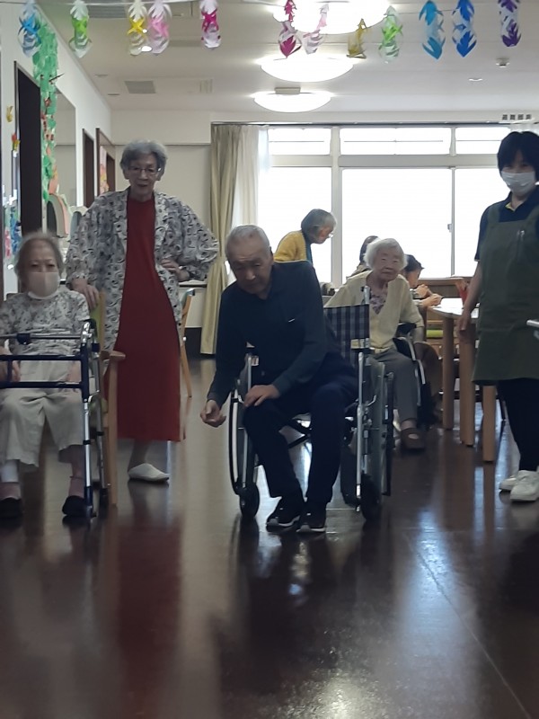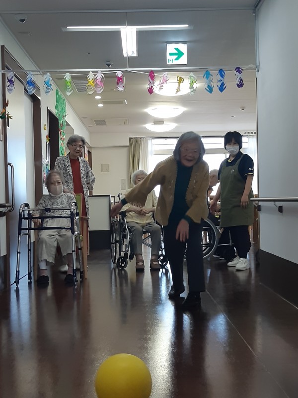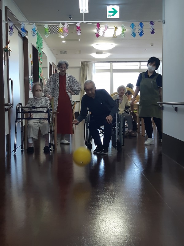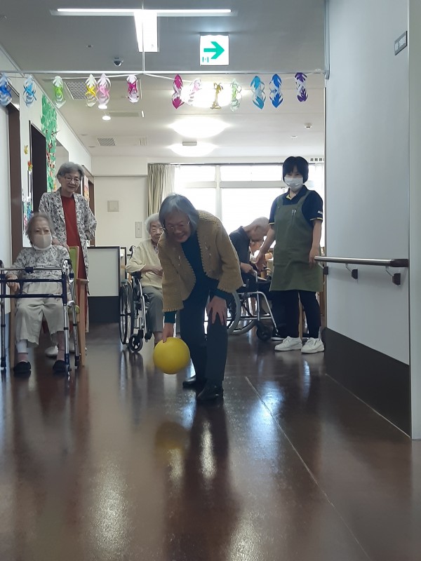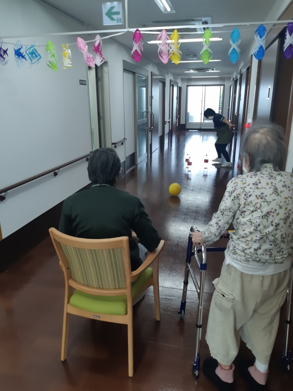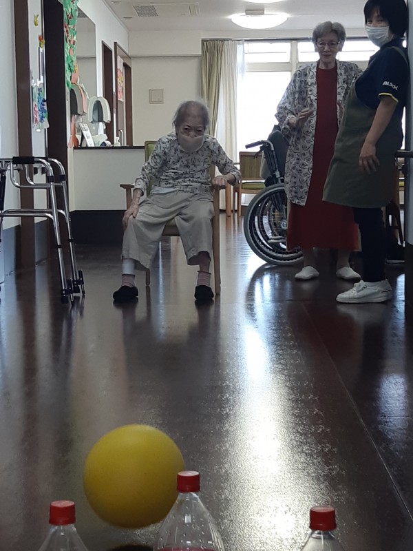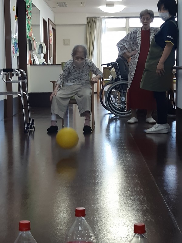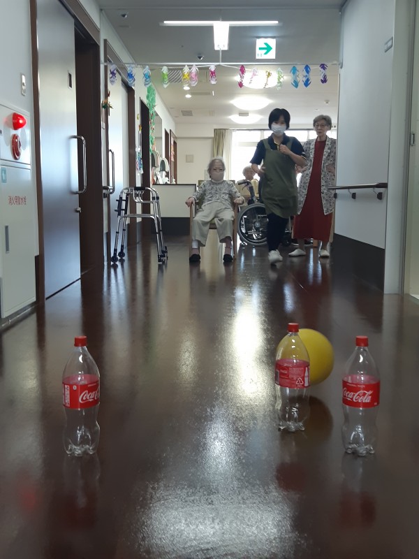 本日の3階では、ジュースの空きペットボトルを使用したボーリングレクを行いました!