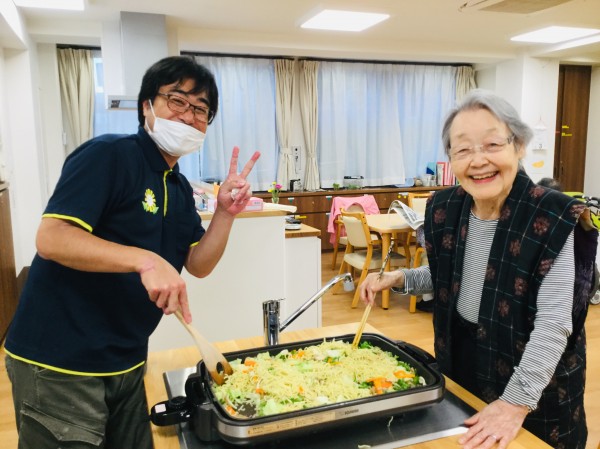 不安そうにされていた利用者様に手を差し伸べて寄り添うスタッフ。