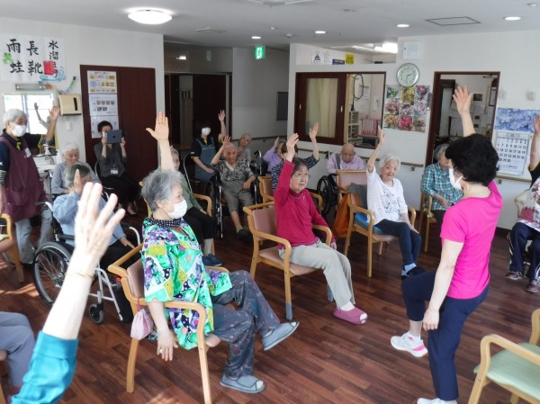6月17日、横浜金が谷では講師の先生をお招きして、いきいきリズム体操を行いました。