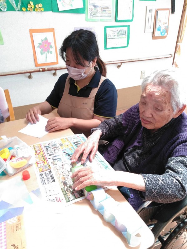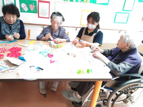 今日は、4階で行われていた壁飾りづくりを