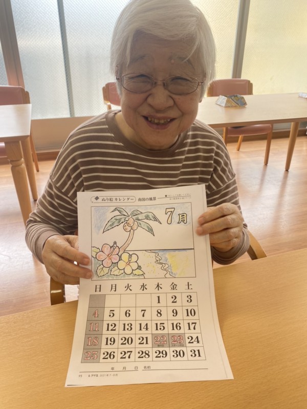 皆様『来月のカレンダーの塗り絵』に集中して取り組まれていました(^。^)