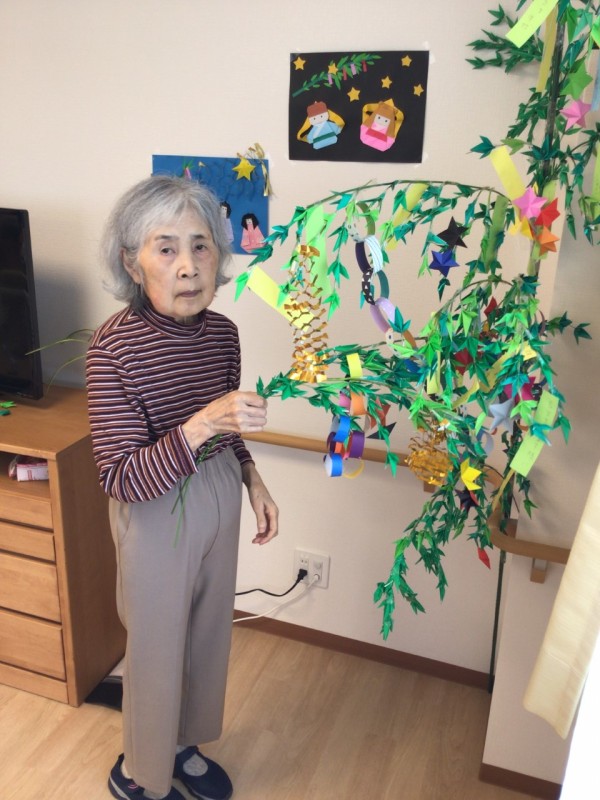 7月7日の七夕に向けて手作りの笹に皆さんで願いを込めて短冊に書いて飾りました。