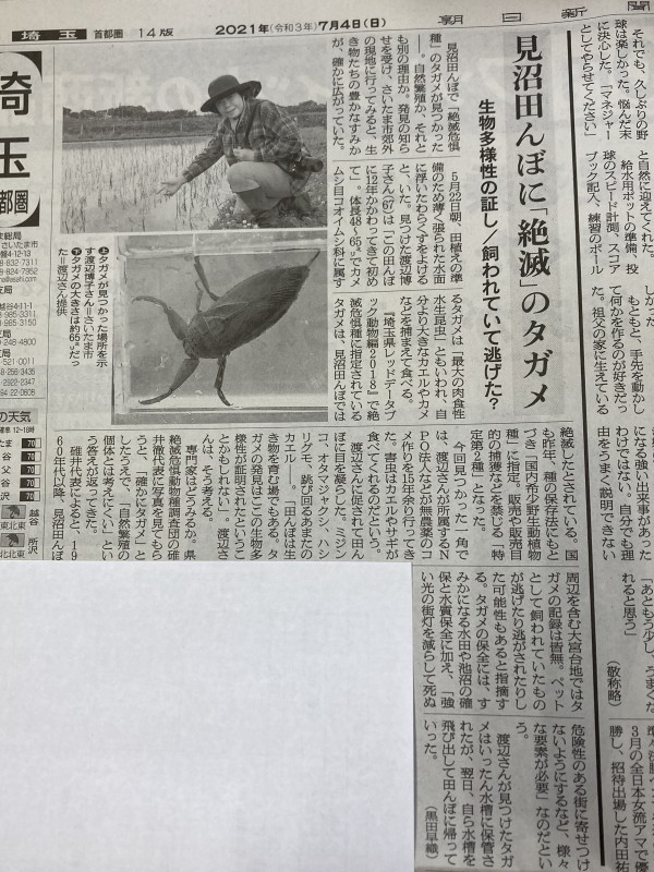 なんでも、絶滅危惧種に指定されているタガメを発見したそうです\(;゚Д゚)/
