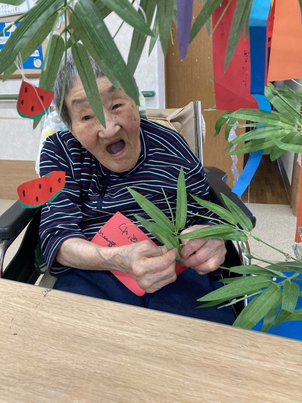 願いのこもった短冊を、笹竹に飾っていただきました。