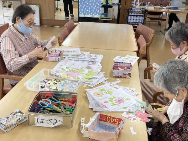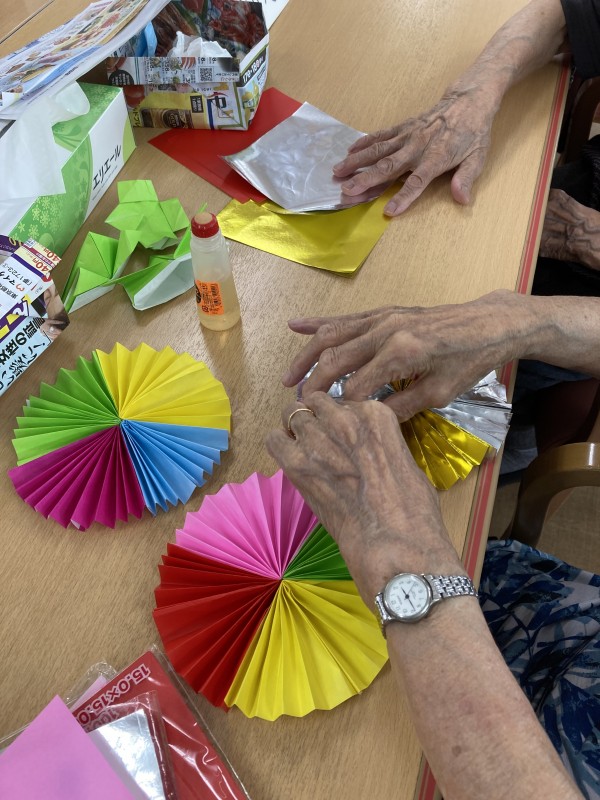 作った飾りはもちろん、ご利用者様皆さんに付けて頂き、色とりどりの飾り付けが出来ました。