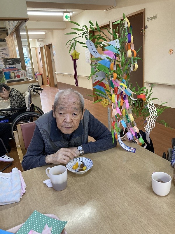 今日は!グループホームみんなの家 蕨の七夕祭りのブログです。7月7日七夕です。残念ながら梅雨の真っただ中、所によっては七夕の願いが届かず大変な事になっているところもあります。最近梅雨になると経験したことのない大雨になり土砂崩れや川の氾濫のニュースがあちらこちらで聞かれます。災害に巻き込まれないよう命を大切にしましょう。さて、7月7日みんなの家 蕨の皆様も七夕のお祭りをささやかながら行いました。マンゴープリンにフルーツを和え召し上がっていただきました。それから、皆様が書かれた願い事を発表しそれぞれの願いが叶うよう心から皆様願って居られました。七夕は、中国から伝わった行事で、本来は旧暦で行う行事です。2021年の旧暦の七夕は8月14日になります。ちょうどそのころは、天の川や織姫、彦星が奇麗に見える時期ですね。都内ではちょっと無理かな~!いくつになっても夜空を眺める余裕を持ちたいですね~。