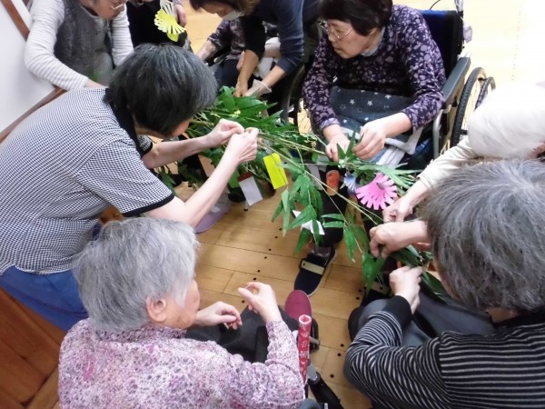 七夕にご入居者様にお集まり頂いて、笹に飾り付けをしました★