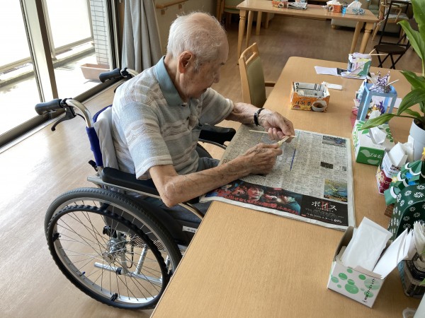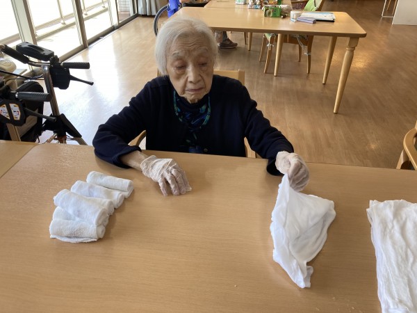 新聞読まれたり、おしぼりを丁寧に丸めたり、工作作りをしたりと