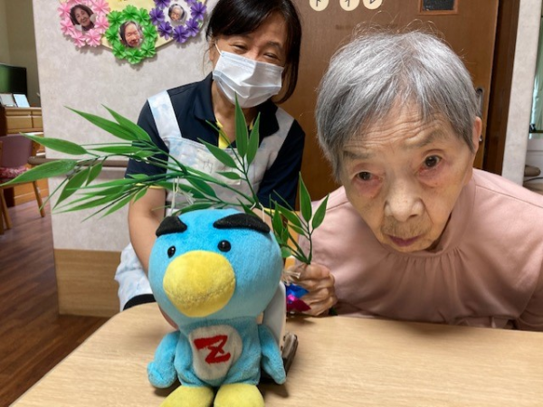 お待たせしました。七夕祭りの様子をご紹介させていただきます。今回、僕(ずーみん)も参加しました。ご利用者様と各々スタッフ一緒に写真を撮り「とても皆さん良い笑顔でよかった」です。