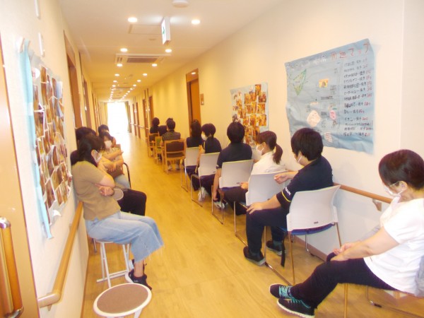 スタッフ15名の接種なので、廊下へ椅子を並べ先生に回って頂く形をとりました。