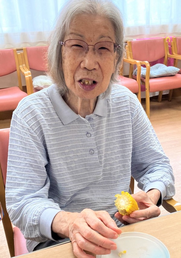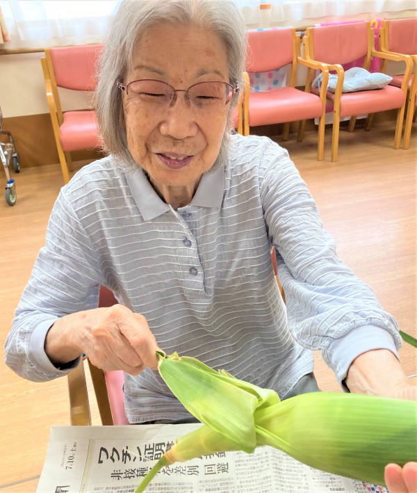 お手伝いしてくださったF様は「とうもろこしの皮なんて剥いたことないわ」と話されていました。