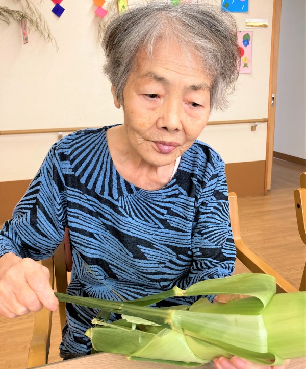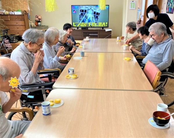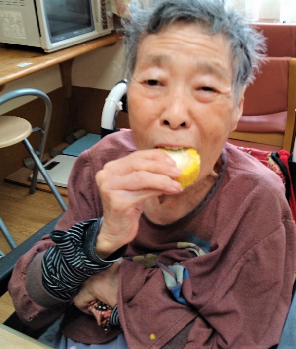 蒸す前に皮むきが必要とのことで、東フロアーの入居者様にお手伝いいただきました♪