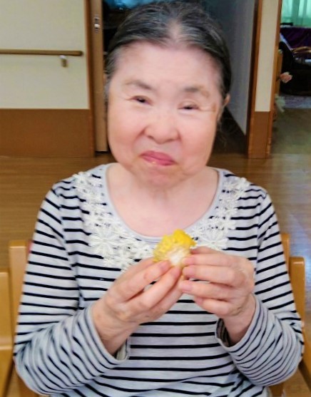 皮むきを誰よりも頑張られていたためか「おいしいけど、これだけじゃ足りんのよ」と冗談ぽく笑われていました( *´艸`)