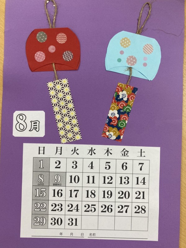 本日二階フロアでは、『8月のカレンダー作り』を行いました。