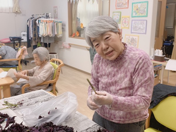 赤しその葉は、職員が煮出してお砂糖やクエン酸を加えることによって