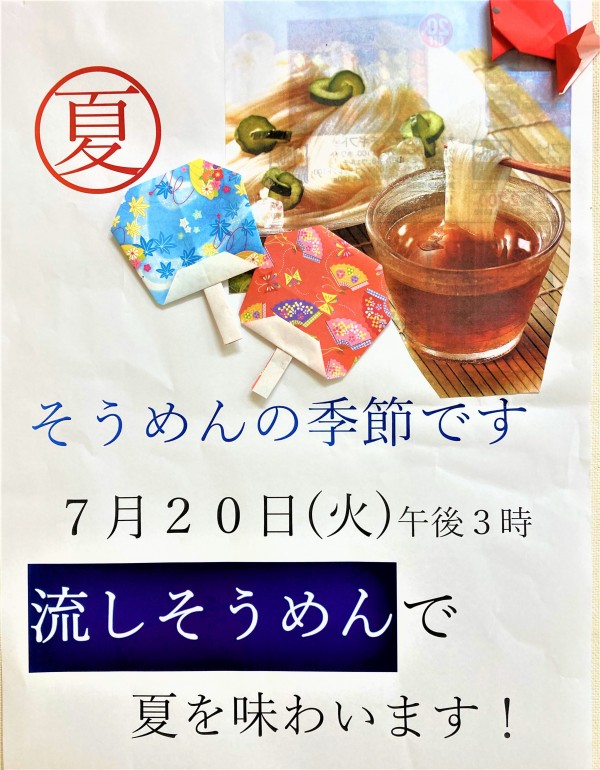 1階フロアーではH様とI様にそうめんを茹でていただきました(*^^*)