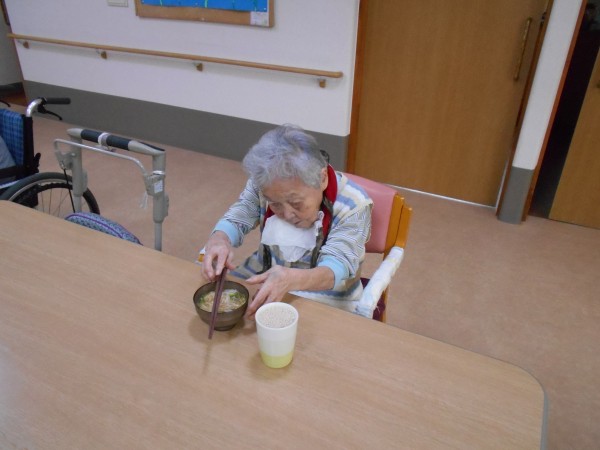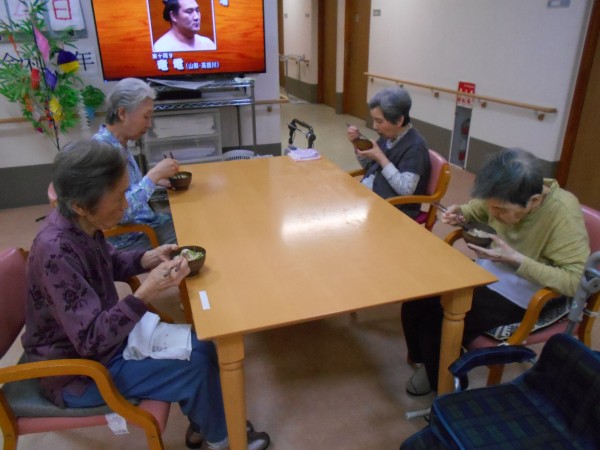 職員と茹でたそうめんを、皆様でおいしくいただきました。