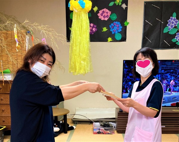 利用者様が毎回のレクを楽しんで頂けるよう、スタッフ同士で知恵を絞り奮闘しています。