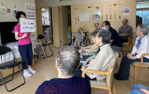 さて、グループホームみんなの家では、専門の体操の指導員の方が定期的に施設を廻り運動の指導をしています。