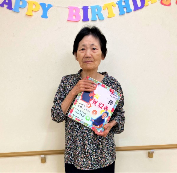 さて話は変わりまして、七夕、西フロアーお誕生日会、流しそうめん…、とイベントが目まぐるしい7月でしたが、今月最後の締めは1階フロアーのお誕生日会です!