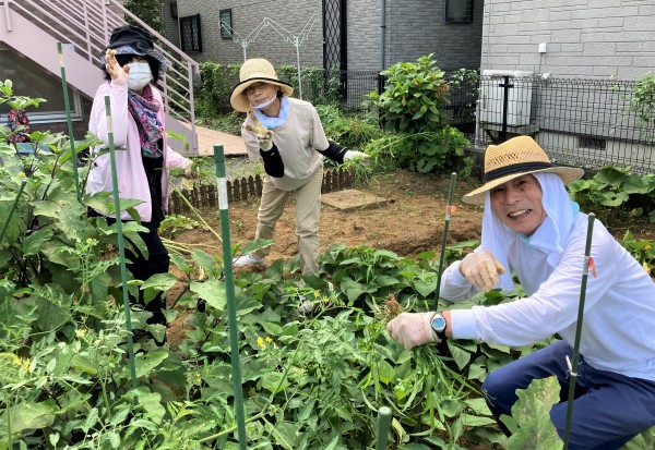 暑い中畑とホームの草むしり