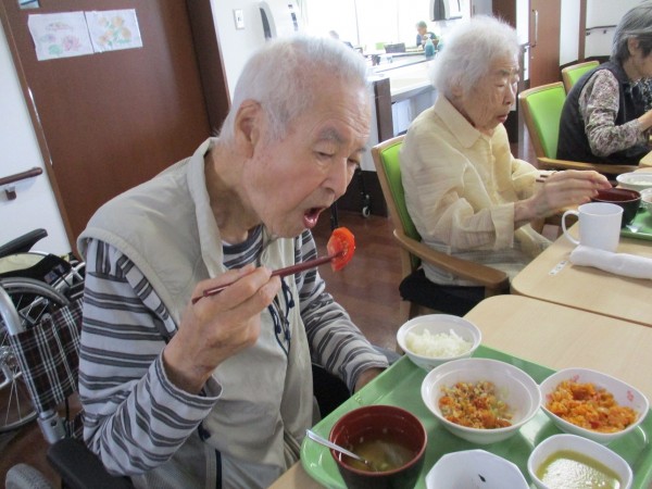 内野本郷の畑で育った真っ赤なトマトを、昼食に召し上がっていただきました!!