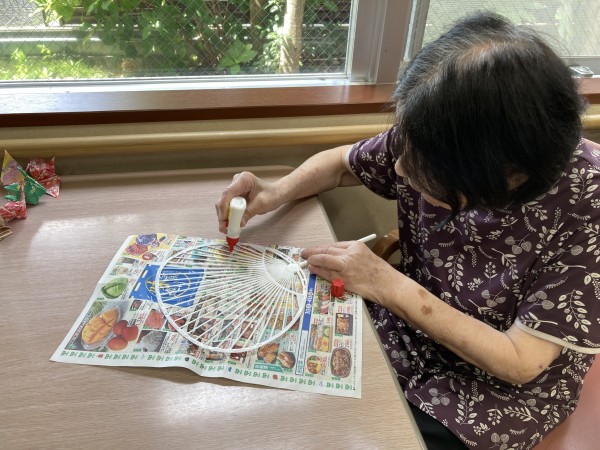 今回ご利用者様にお手伝いいただき、うちわを手作りしてみました!(^^)!