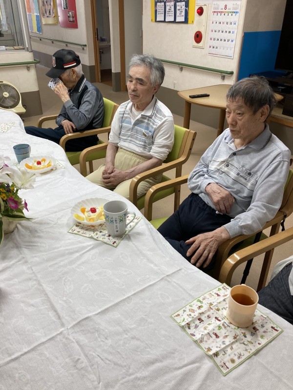美味しくケーキを召し上がっていただいた後は、ハッピーバースデー用の帽子をお1人ずつ