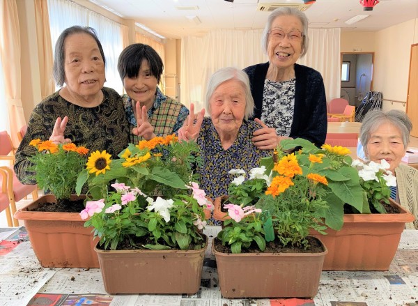 お花はお好きですか、とホーム長がお聞きすると「そうね、好きよ」と柔らかい表情でお話してくださいました(*^^*)