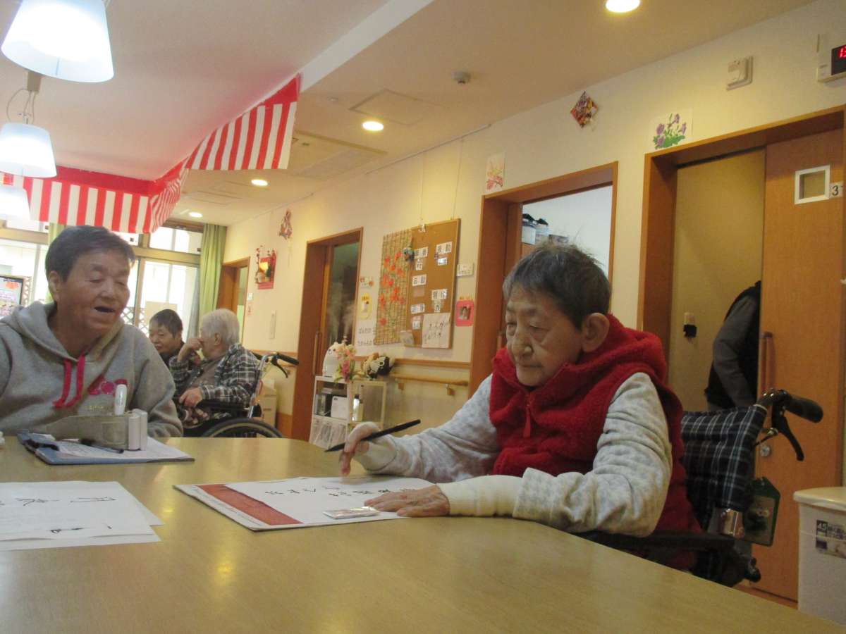 ホームの中では福笑いや書き初め・カルタ遊びなどをしてのんびり過ごしました!