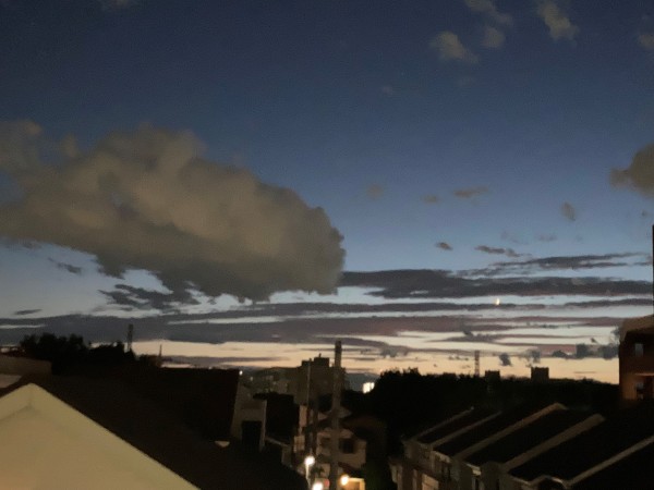 みなさん見えるでしょうか? 細目の月も雲とかくれんぼをしていました。